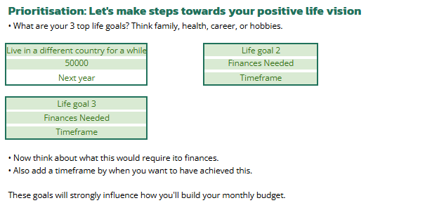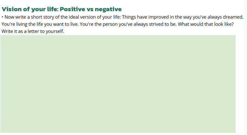 In the ‘Vision of your life’ section of the workbook, employees can compare their current path with the life they’d ideally like to lead.