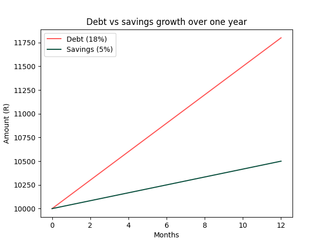 - R10,000 in credit card debt at ±18% interest