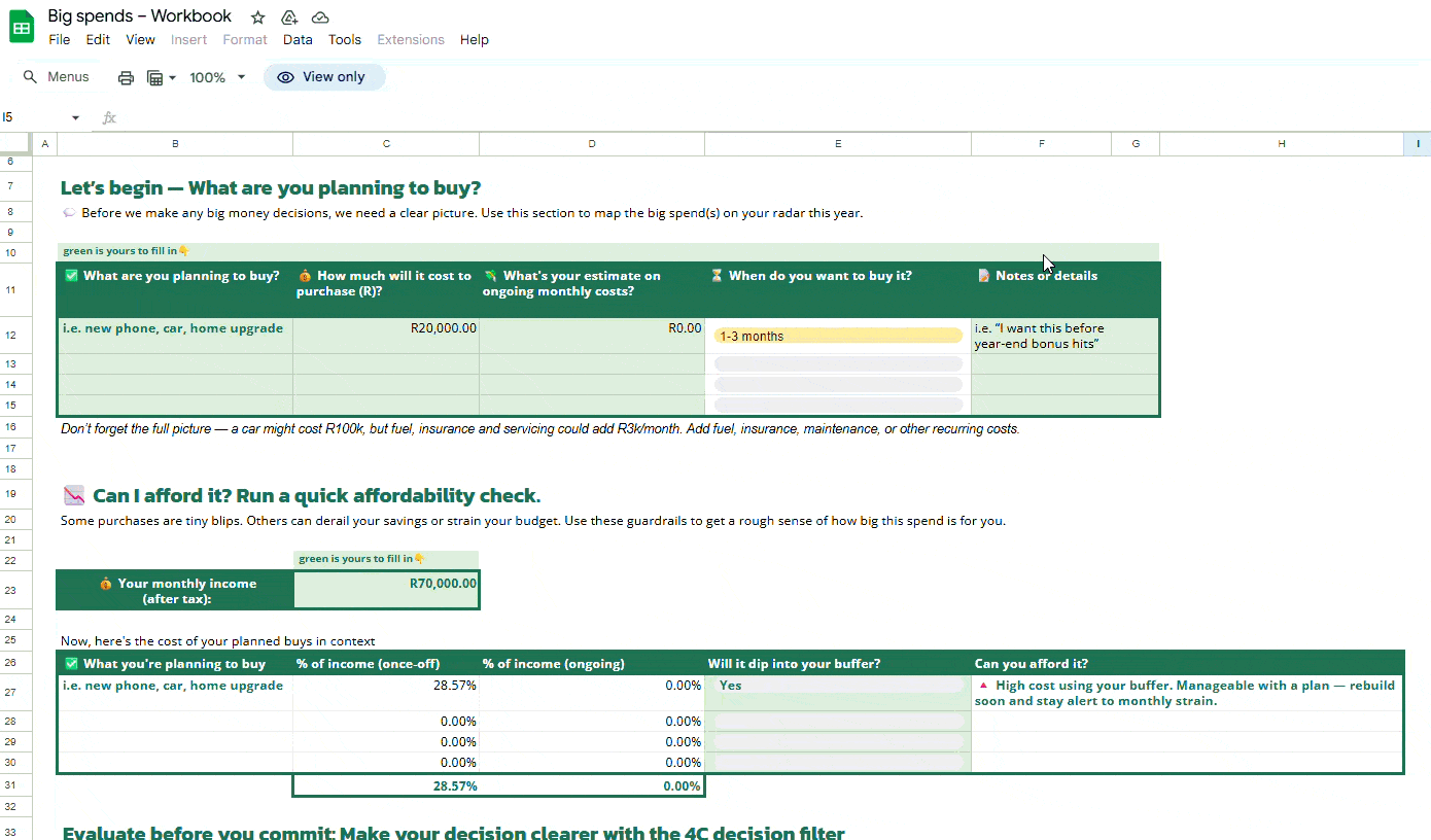 🧾 Map out the big things you’re planning to buy🤯 Spot the sneaky ongoing costs people often forget🧠 Stress-test your decision using our 4C filter: clarity, control, consistency, and continuity💸 Build a real plan to fund it, whether that means saving slowly towards it or using your buffer wisely.