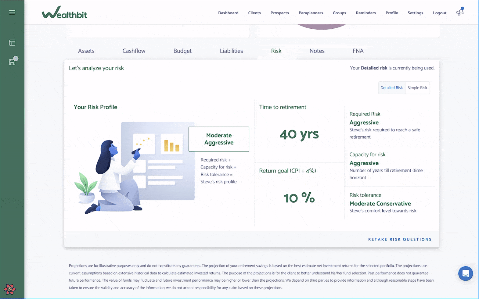 Stay compliant with up to date risk profiles. When the investments change, your client risk tolerance and risk capacity is automatically recalculated ensuring it’s as accurate as possible.